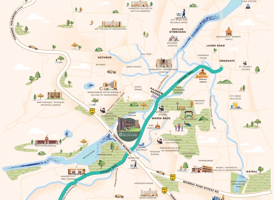 Kalpataru Blossoms is a visionary residential project by the renowned Kalpataru Group, ideally located on prime Sinhagad Road, Pune. Spread across approximately 3.5 acres, this thoughtfully planned development offers spacious, vastu-compliant homes designed for families and professionals seeking a perfect balance of luxury, comfort, and convenience. Possession: March 2029. Featuring well-ventilated apartments, expansive layouts, premium specifications, and world-class lifestyle amenities, Kalpataru Blossoms reflects modern elegance backed by the trust and legacy of a builder with decades of excellence.